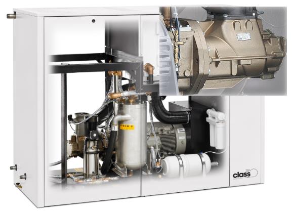 不论风冷或是水冷型机组,LUW VSD系列机型采用无油喷水螺杆压缩技术,参与压缩过程的水采用标配的RO反渗透系统纯化后的水,确保洁净无垢,保证转子和轴承的寿命。